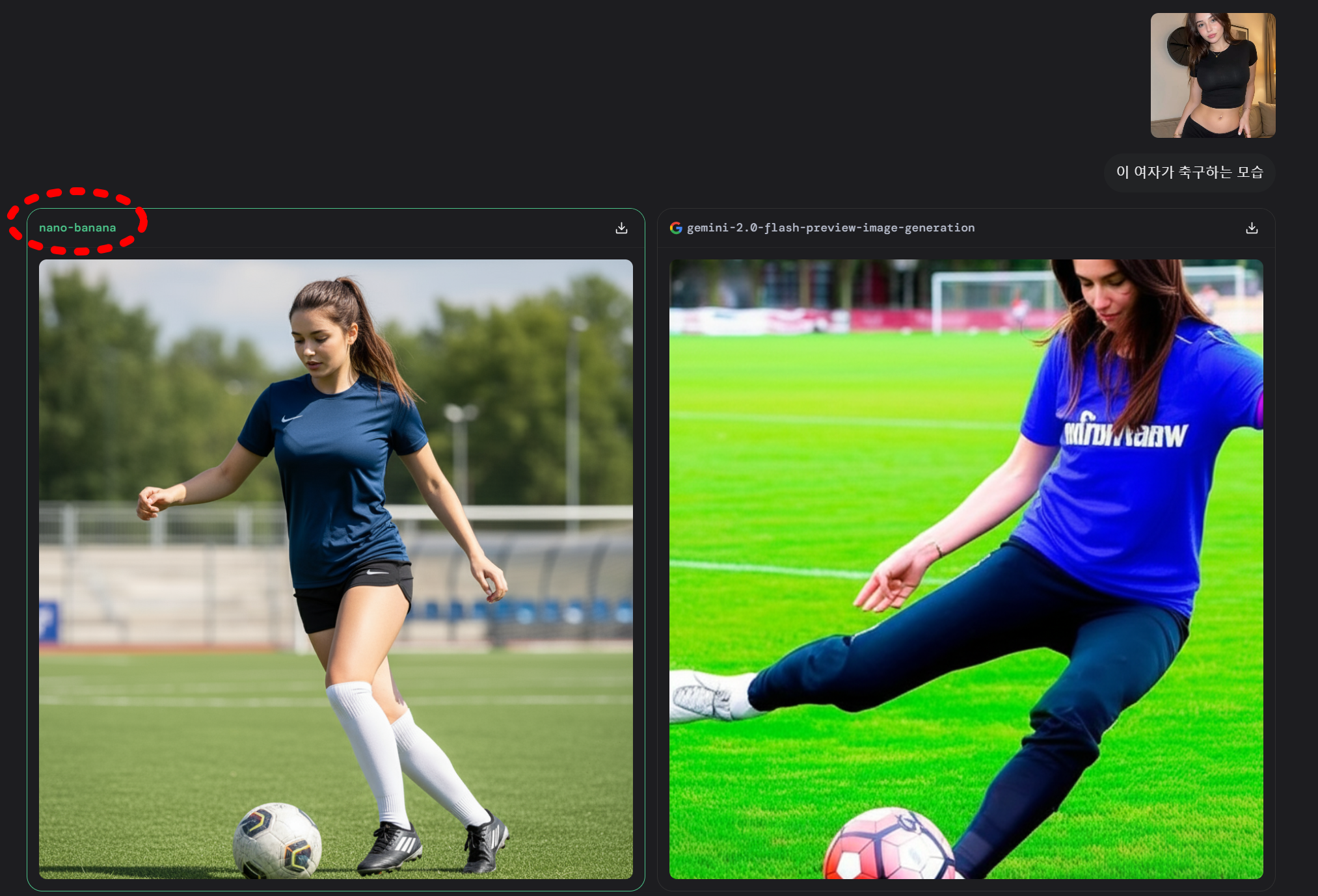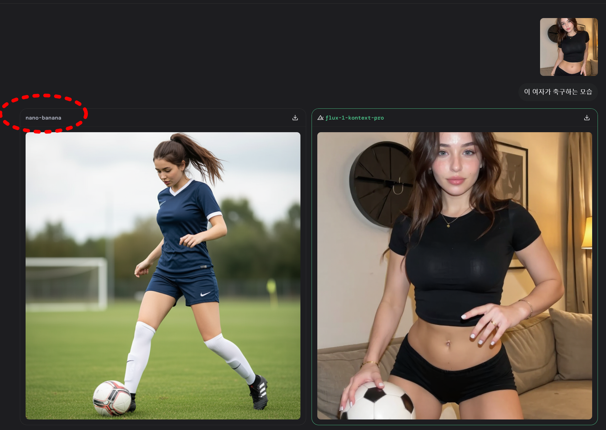'Battle' 모드를 통해 여러 AI 모델의 결과를 경쟁시키는 방식으로 더 나은 이미지를 선택합니다. 그 후 어떤 모델이 이미지를 생성할 수 있는데, nao-banana가 생성한 이미지를 확인할 수 있습니다.