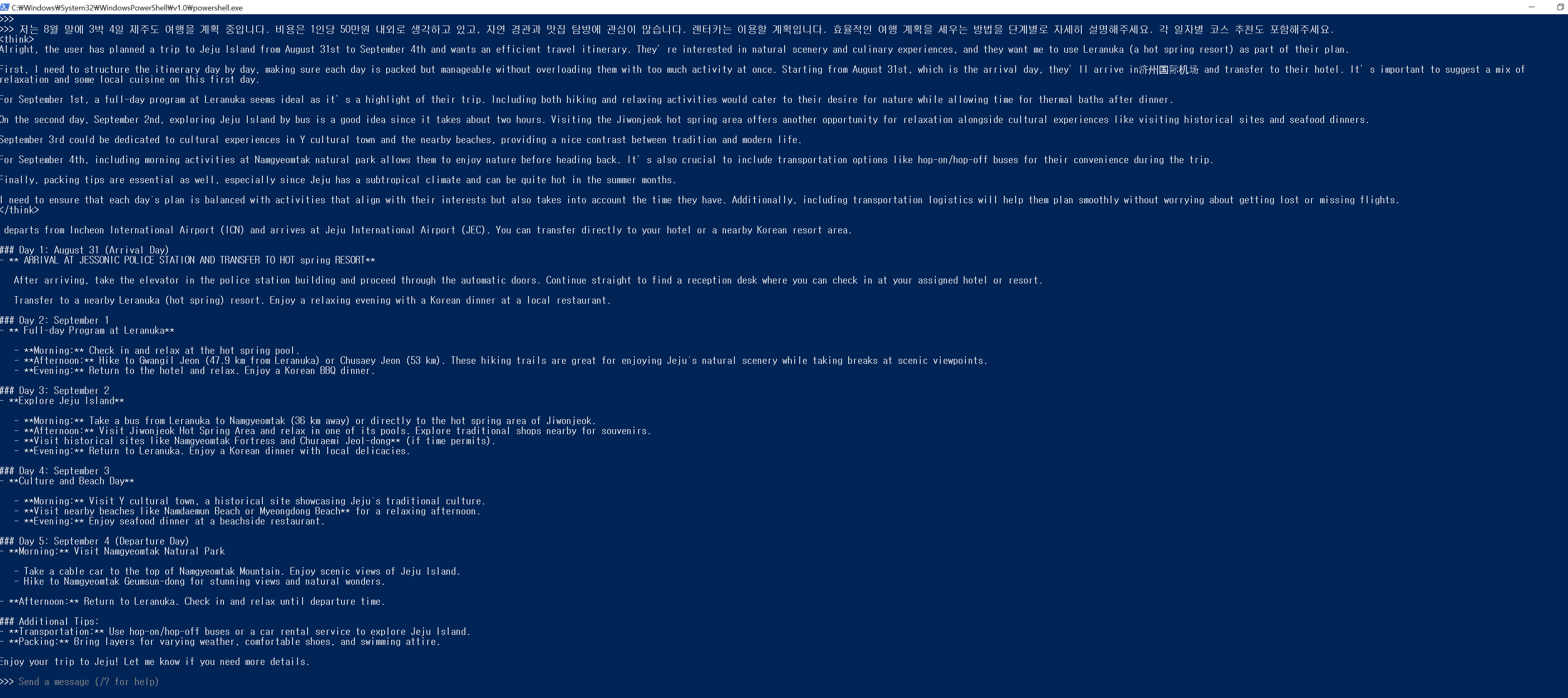 이제 AI 모델에게 질문하거나 명령을 입력하여 대화를 나눌 수 있습니다.