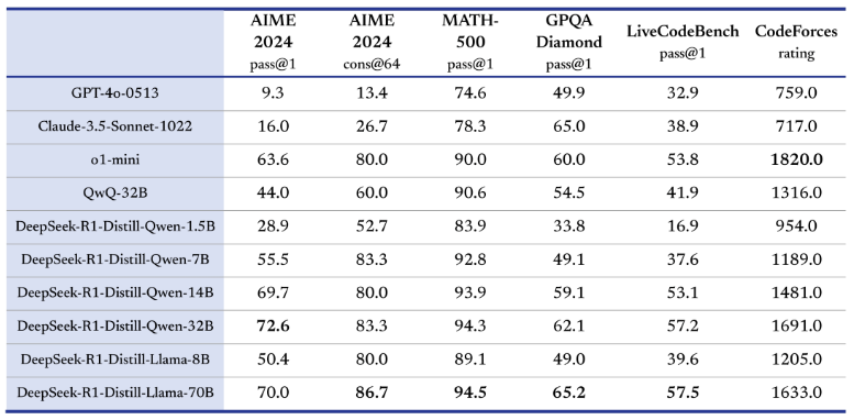 아래의 표를 보면 7B의 성능이 8B의 성능보다 좋고, 32B와 70B의 성능이 많이 유사함을 알 수 있습니다.