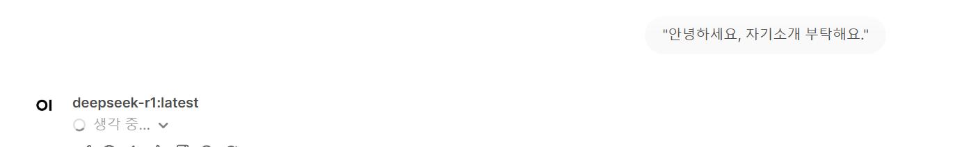 저는 이전에 'deepseek-r1' 으로 모델을 설치했기때문에 해당 모델이 보여지고 있습니다.
