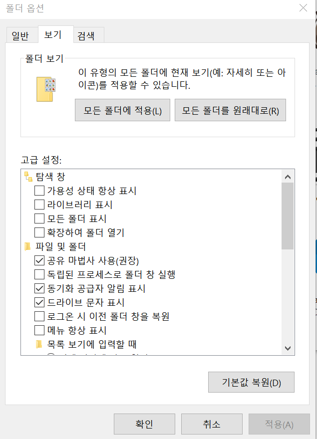 ③폴더 옵션 → 보기 탭