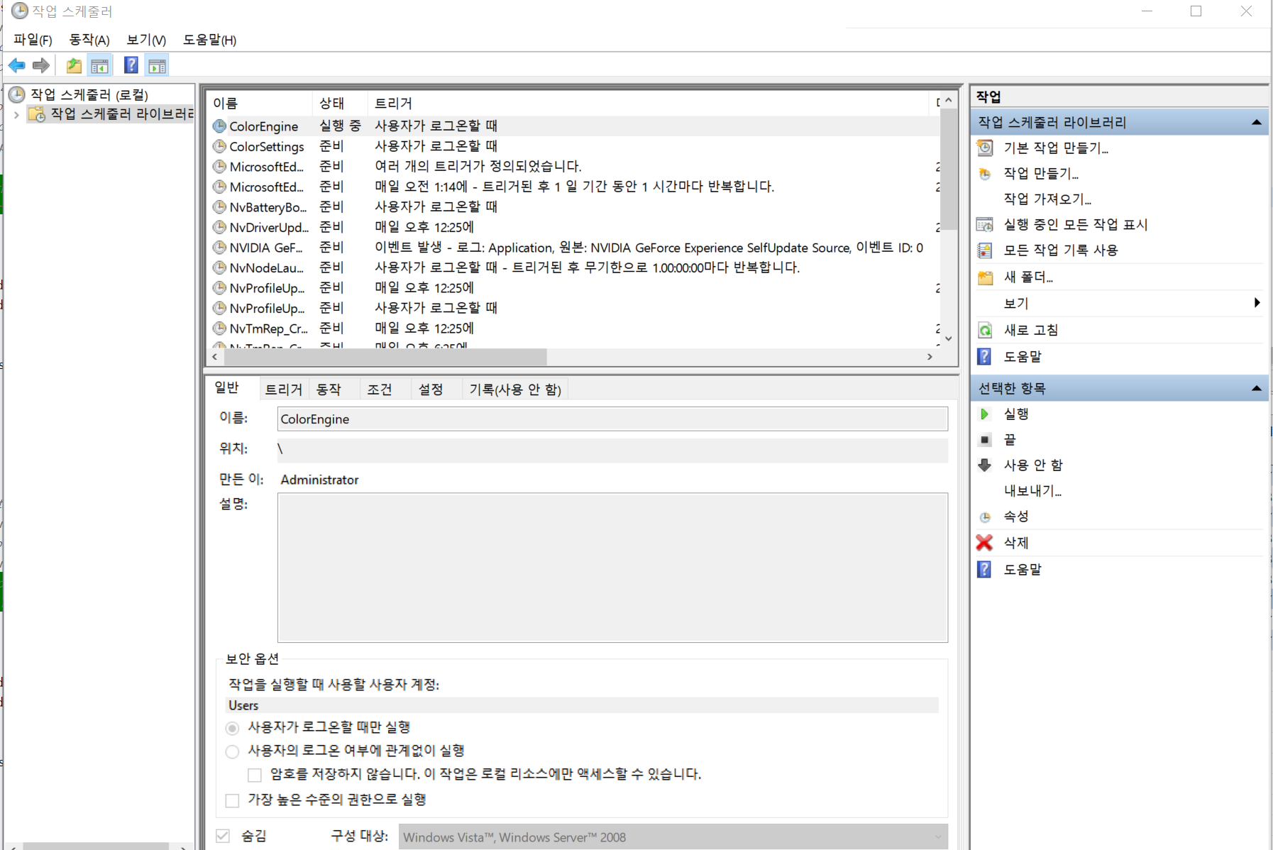 ▶ 작업 스케줄러 확인 방법: