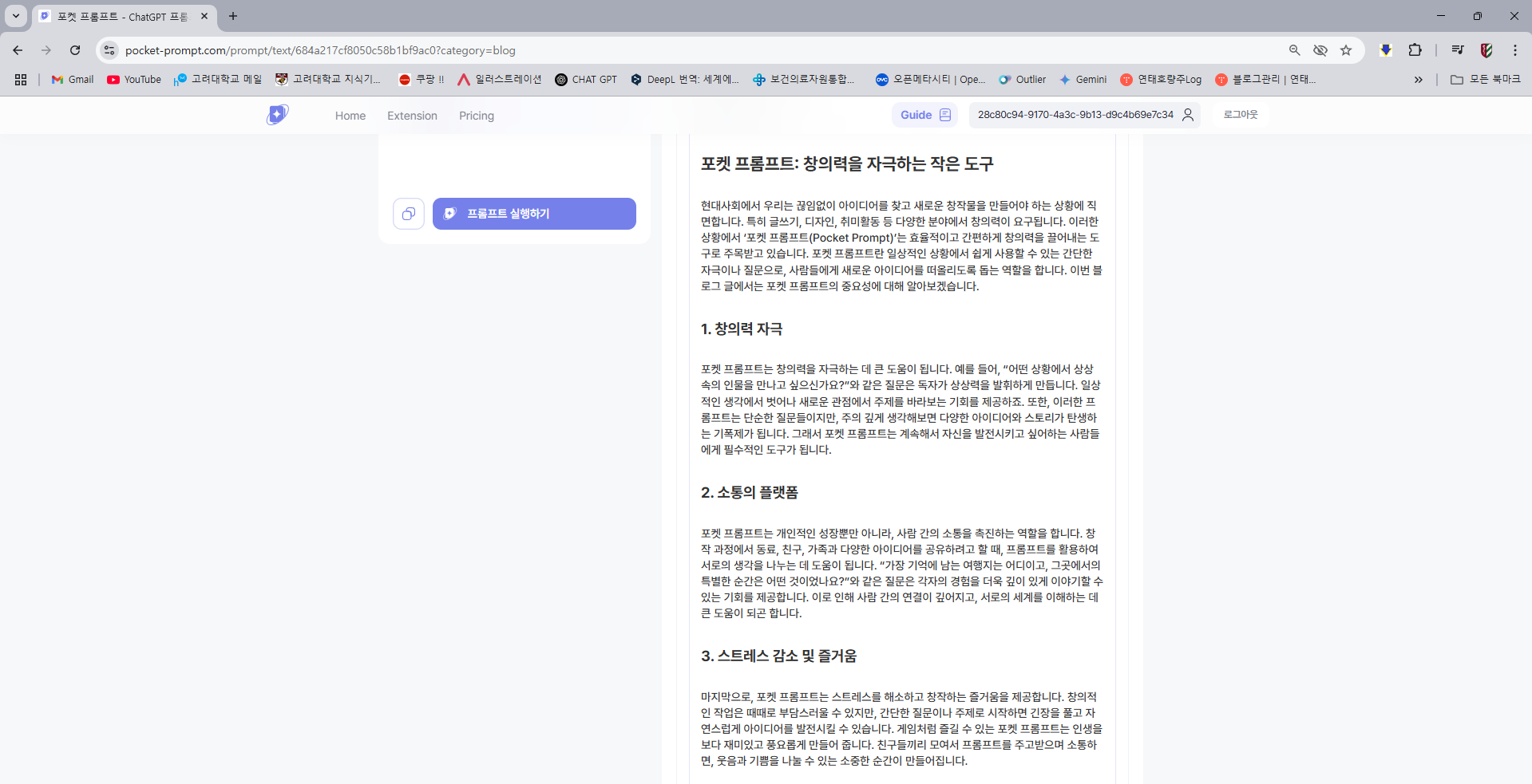 저는 '구조화된 블로그 글 작성 가이드'라는 주제의 프롬프트를 열람하였습니다.