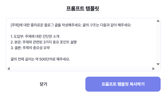 ChatGPT, Claude 등 AI 프롬프트 작성이 어려우신가요? 검증된 프롬프트 템플릿을 저장하고 바로 사용하세요!
