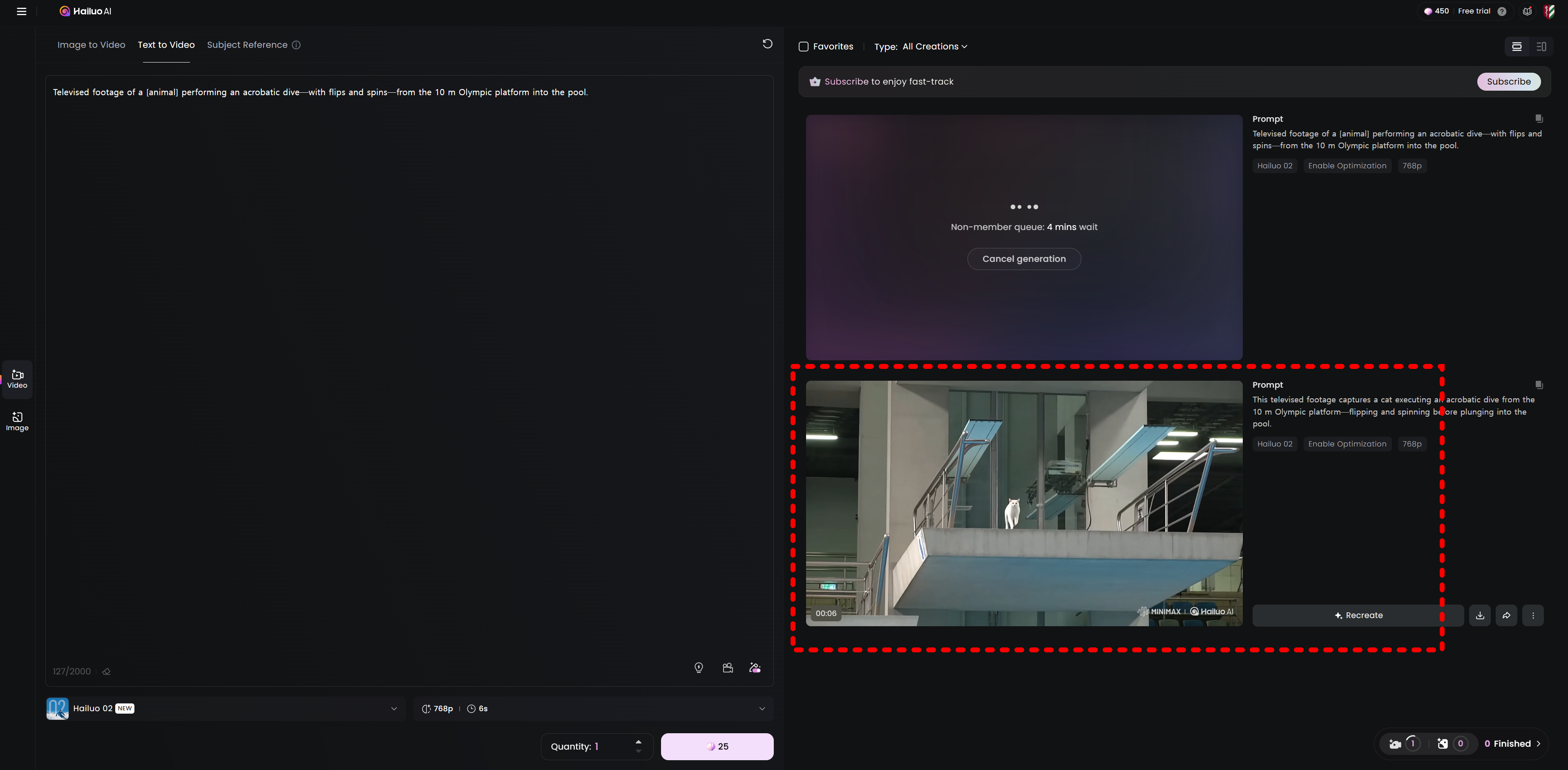[디지털투데이 AI리포터] 지난 20일(현지시간) IT매체 테크레이더에 따르면 하이루오 02로 생성한 고양이 다이빙 영상은 엑스(구 트위터) 유저 \'R.B 키퍼\'(R.B Keeper)가 구글 비오 3(Veo 3)에서 테스트