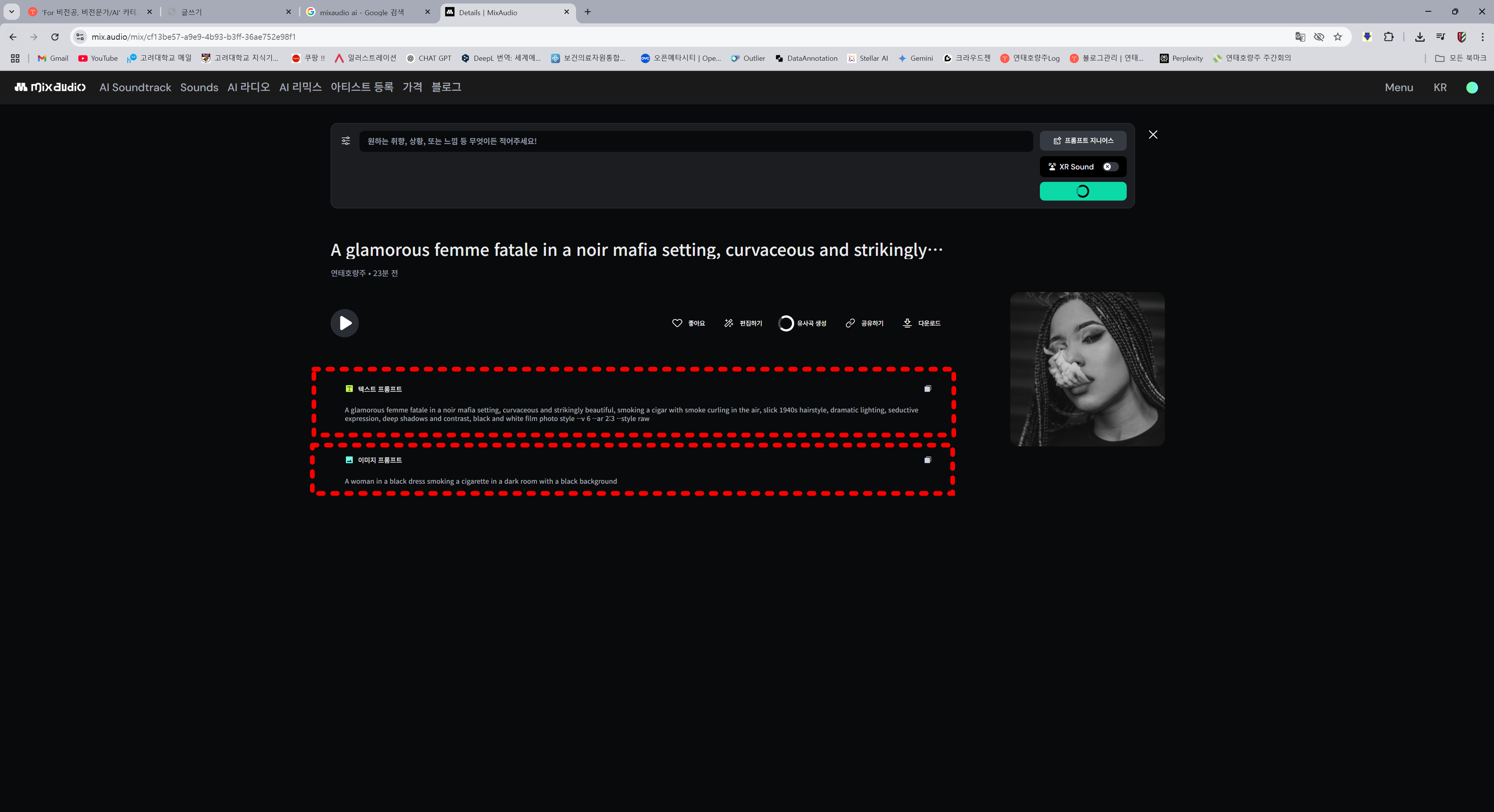 그리고 MixAudio의 재미있는 점인데, 사진을 첨부해도 사진과 어울리는 곡이 생성됩니다.