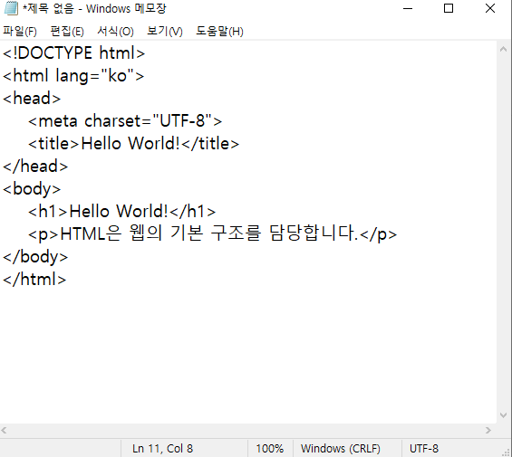<p>HTML은 웹의 기본 구조를 담당합니다.</p>