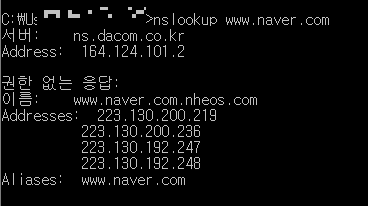 우리가 네이버에 접속을할때는 보통 검색창에 https://www.naver.com 처럼 도메인을 치지 해당 아이피를 알고있지는 않습니다.